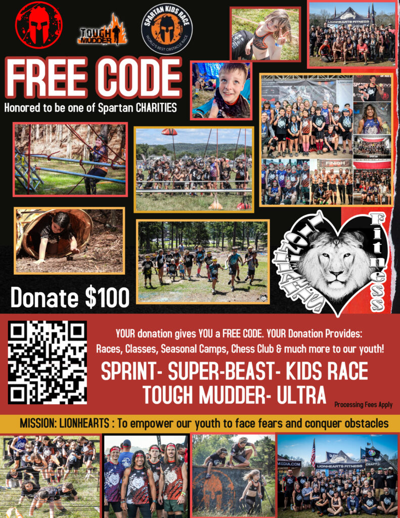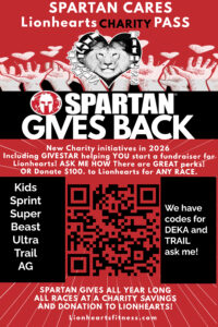 DONATE HERE $100 to Lionhearts and receive a SPARTAN ANY RACE CODE